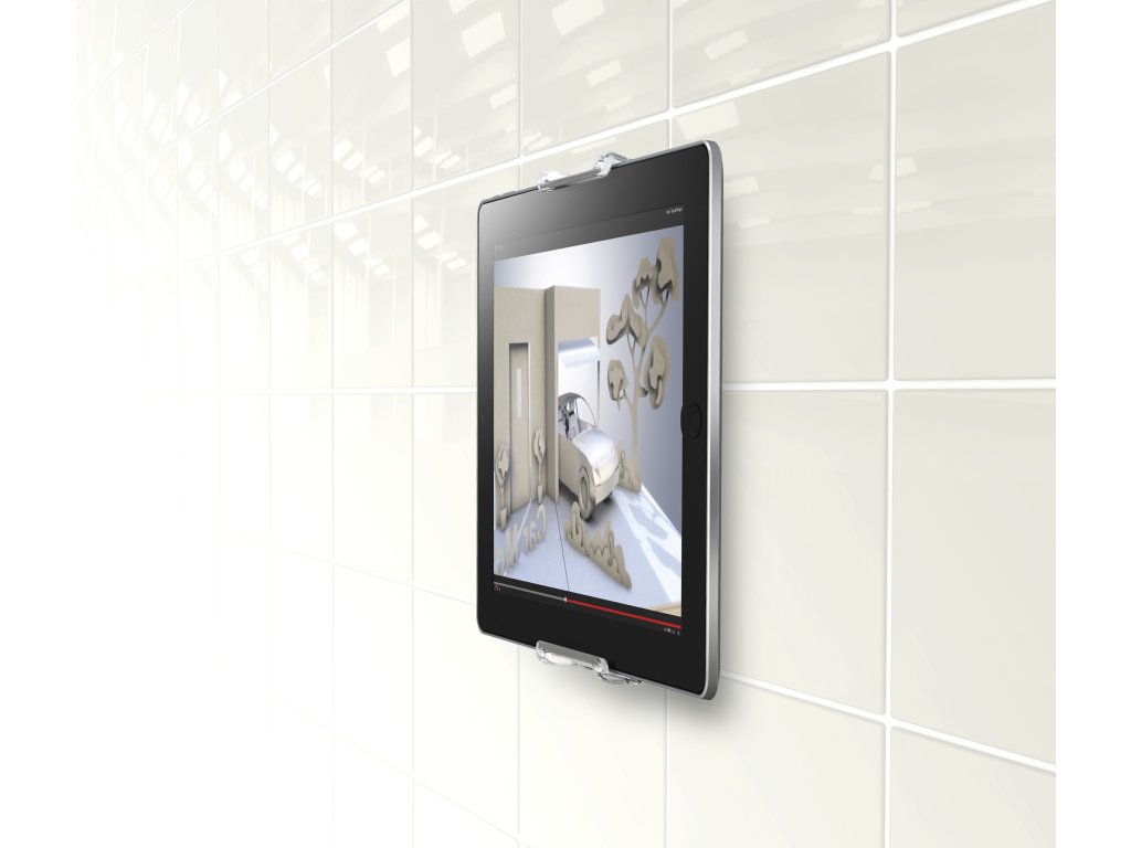Užij si hudbu a filmy kdekoliv. Například při relaxování ve vaně. Samozřejmě nechcete riskovat, že vám tablet spadne do vody. Proto Vogel's nabízí univerzální, přesto bezpečný systém uchycení tabletu na stěnu. Skládá se z univerzálního konektoru TMM1000 a TMM107 - 2 úchytů na stěnu. Stylový adaptér vyhovuje všem tabletům o velikosti 7-12" o tloušťce 0,5-1,3 cm.
