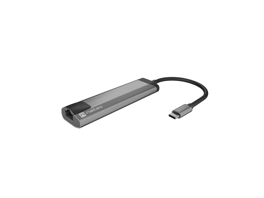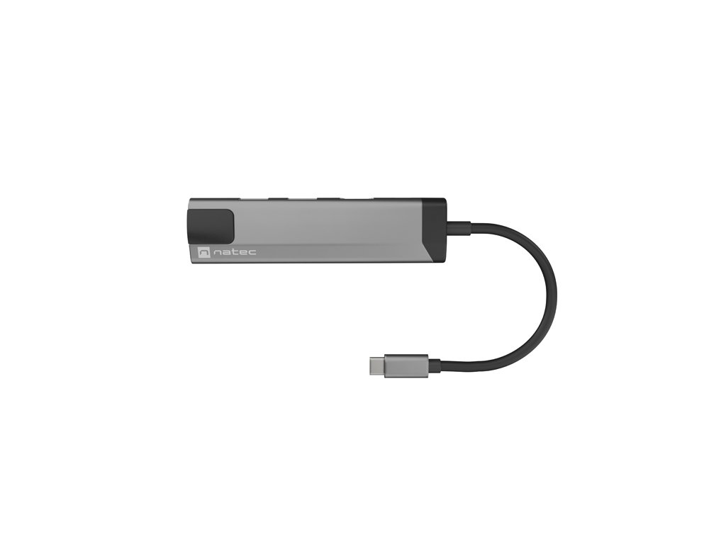Natec multiport adaptér FOWLER GO HUB 5v1, 2X USB 3.0 HUB, HDMI 4K, USB-C PD, RJ45