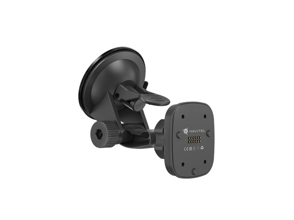 Jednou z klíčových výhod NAVITEL RE 5 DUAL je magnetický držák s nepřetržitým napájením. Držák s přísavkou na sklo, který je součástí balení, se pevně připevňuje k čelnímu sklu automobilu. Prostřednictvím USB portu je připojen k zásuvce zapalovače. Nabíječka do auta NAVITEL je také součástí balení.