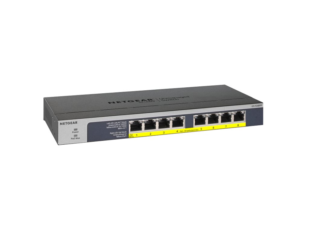 NETGEAR 8-port 10/100/1000Mbps Gigabit Ethernet, Flexible PoE, GS108PP