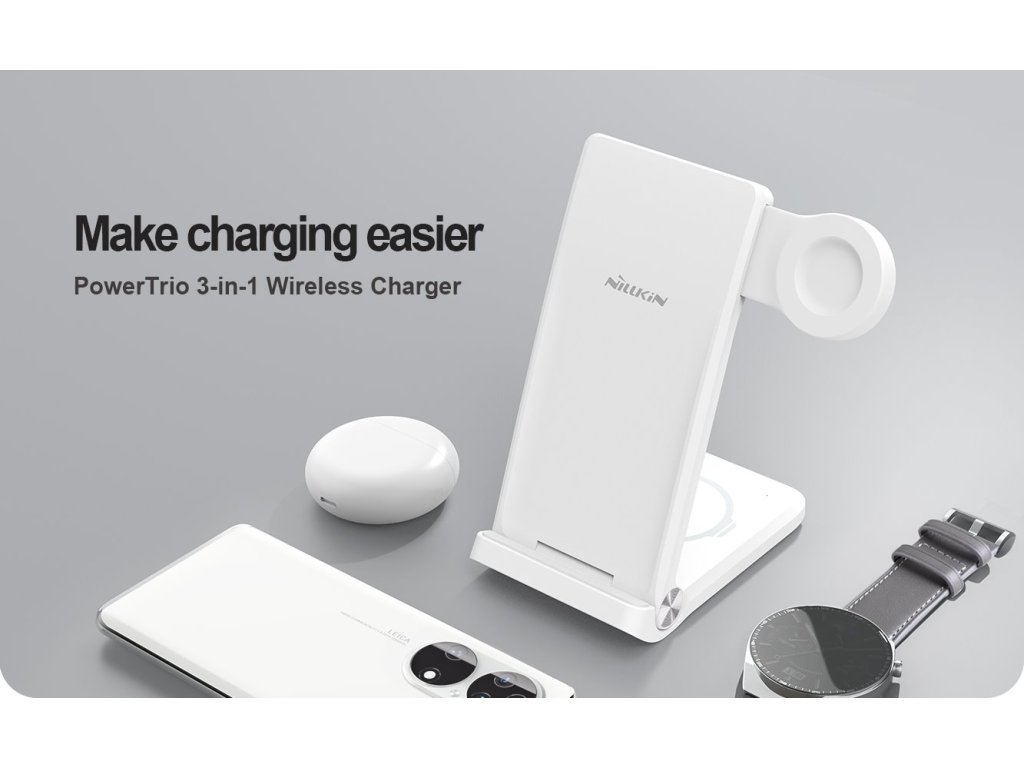 Nillkin Power Trio bezdrátová nabíječka pro Váš telefon, bezdrátová sluchátka a chytré hodinky Huawei Watch.
