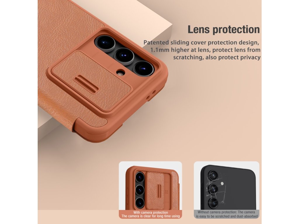 Nillkin QIN Book PRO pouzdro je vyrobeno z kvalitní PU kůže, otevírá se do boku jako knížka a navíc je oproti klasickému QIN Book vybaveno posuvným krytem čoček fotoaparátu.