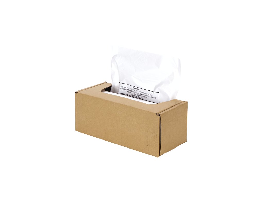 Plastové výměnné pytle pro Automax™ 300C, 300CL, 500C, 500CL, vyrobeny z odolného materiálu pro bezpečné vyprázdnění odpadního koše skartovače.Jsou přizpůsobené rozměrům jednotlivých skupin skartovacích strojů. Napomáhají zachovat místo skartovaní čisté.