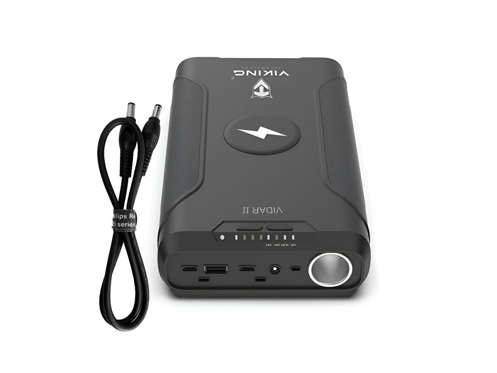 Powerbanka Viking VIDAR II je spolehlivý pomocník pro každého, kdo potřebuje mít energii vždy po ruce – ať už na vícedenním kempování, při práci v terénu nebo na cestách. S kapacitou 72000?mAh, kompaktními rozměry a širokým výběrem výstupů pohodlně nabijete více zařízení současně – od mobilních telefonů přes notebooky až po 12V spotřebiče.