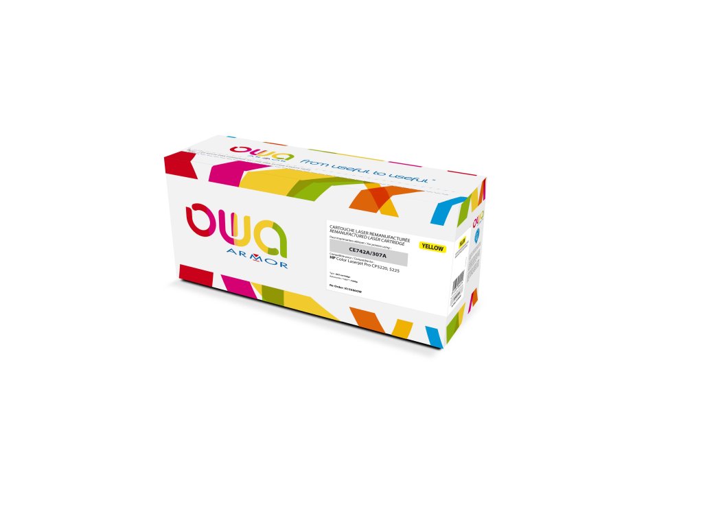 Alternativní žlutá tonerová kazeta ARMOR s označením K15586 je kompatibilní s originální kazetou HP CE742A a je určena pro laserové zařízení Hewlett Packard LJ CP5225. Tato alternativa umožňuje vytištění až 7 300 stran při 5% pokrytí (dle normy pro testování výtěžnosti ISO/IEC 19752).