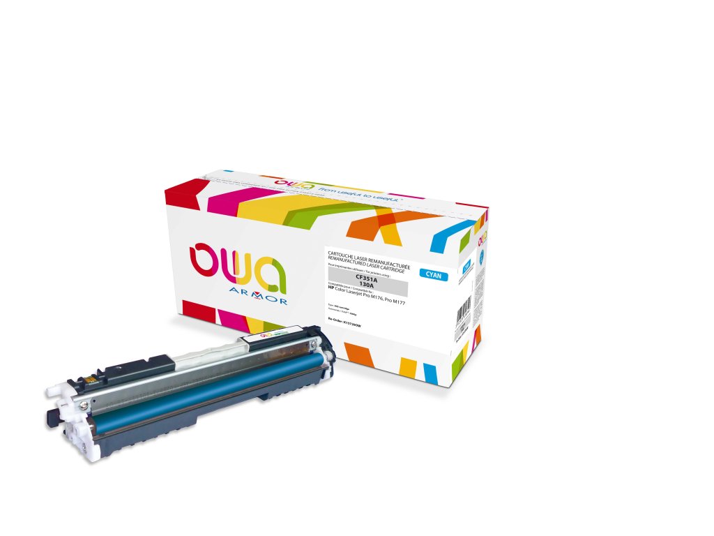 Laserový toner značky OWA Armor kompatibilní s HP CLJProM176n cyan.
