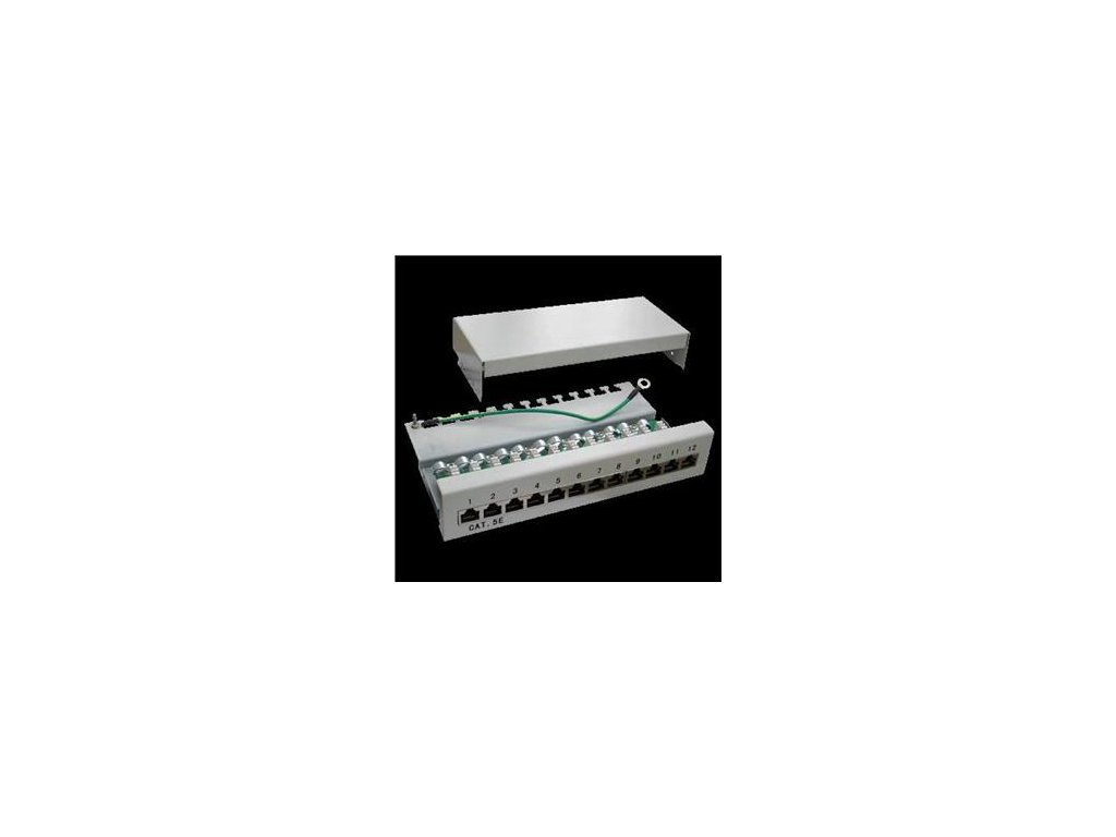 Samostatný 12 portový stíněný patch panel CAT 5e pro montáž na zeď, bez použití datového rozvaděče.