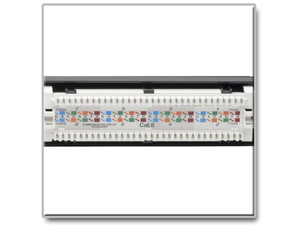 Patch panel pro montáž do racku 1U, 24x Cat6 PoE+ Compliant, 110/Krone, 568A/B, RJ45 Ethernet