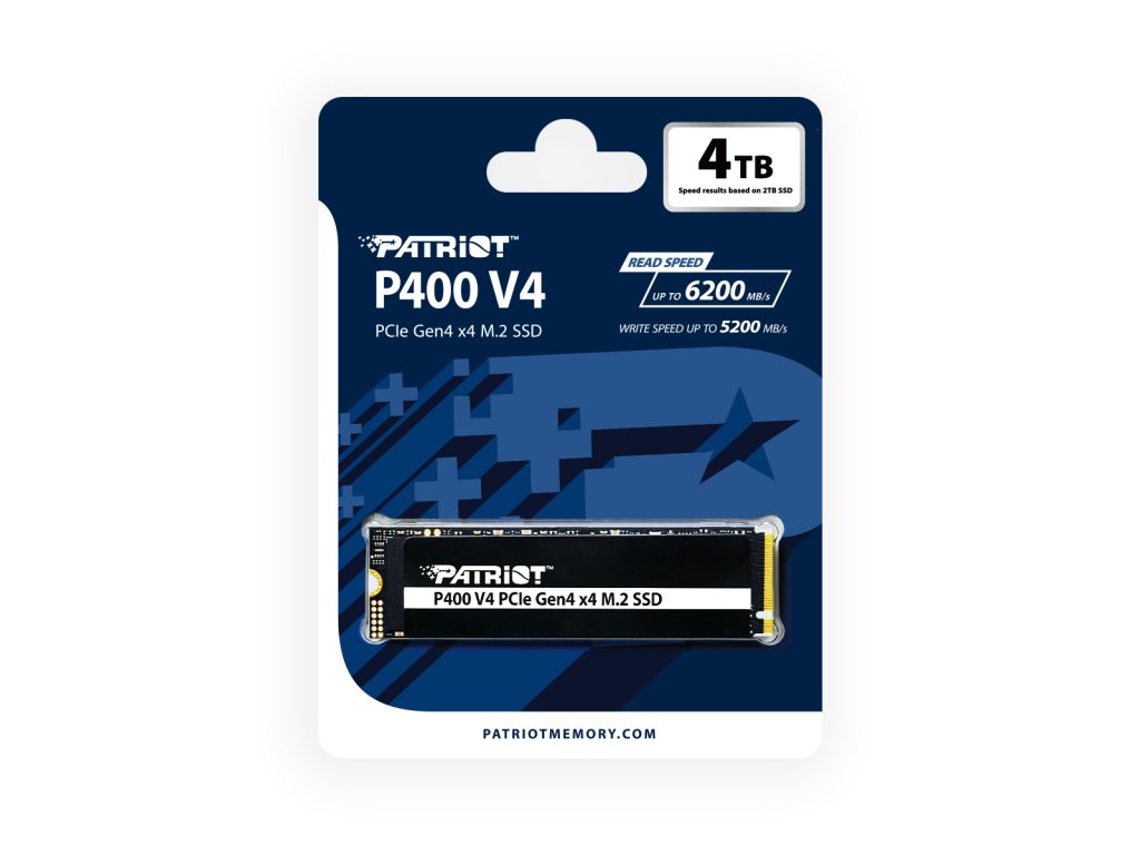 Uvolněte bezkonkurenční výkon s SSD Patriot P400 V4, který je vybaven řadičem NVMe Gen4 x4 pro bleskové rychlosti až 6 200 MB/s při čtení a 5 200 MB/s při zápisu (od 2TB kapacity). Ať už hrajete hry, řešíte tvůrčí projekty nebo multitasking, disk P400 V4 poskytuje výjimečnou rychlost a spolehlivost přizpůsobenou vašim potřebám.Disk P400 V4 je optimalizován pro kompatibilitu s PC a PS5 a zajišťuje špičkový výkon napříč platformami. V systému PS5 si vychutnejte sekvenční čtení rychlostí až 6 000 MB/s, což zajistí plynulé hraní a rychlé načítání.