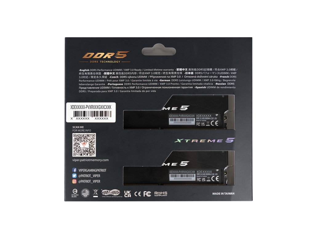 Patriot Viper Xtreme 5: Vlajková loď DDR5 pamětí s výkonem na profesionální úrovni až do 8000 MHz.* 100% ručně testováno: Plně testované a vyladěné profily pro maximální výkon