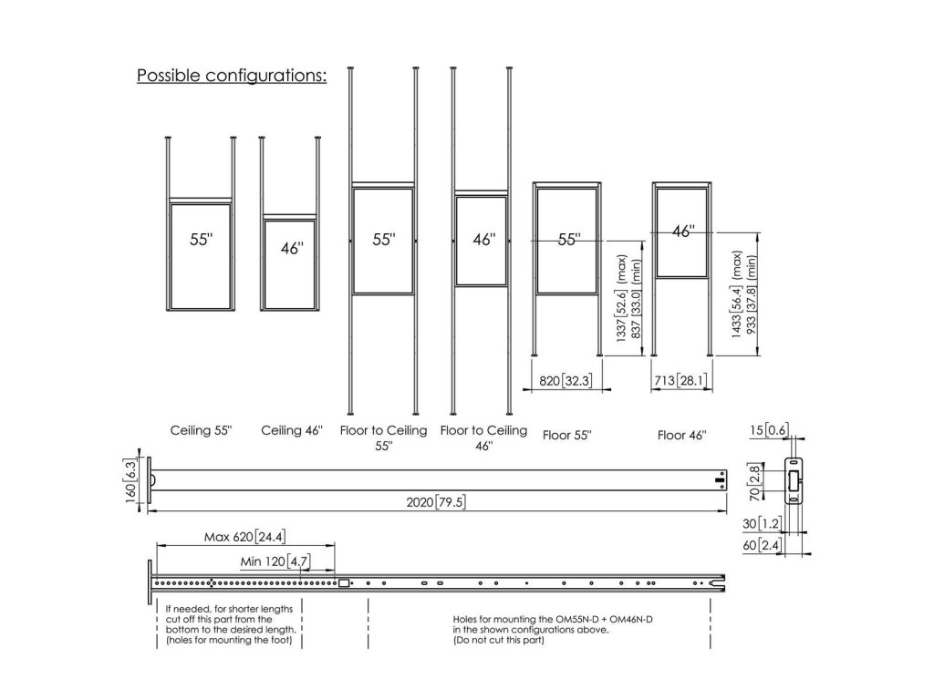 Oboustranný displej Samsung OMN-D je inovativní produkt, který si zaslouží elegantní a chytré řešení montáže. PFFC 4655 je navržen tak, aby mohl být použit jako stropní držák, držák na podlahu a pokud zkombinujete dva, je také držákem od podlahy ke stropu. Držák Samsung se snadno instaluje a nabízí čistou integrovanou správu kabelů. Vogel's navrhl držák tak, aby dokonale doplňoval jedinečný displej Samsung OMN-D.*Stylový špičkový design
