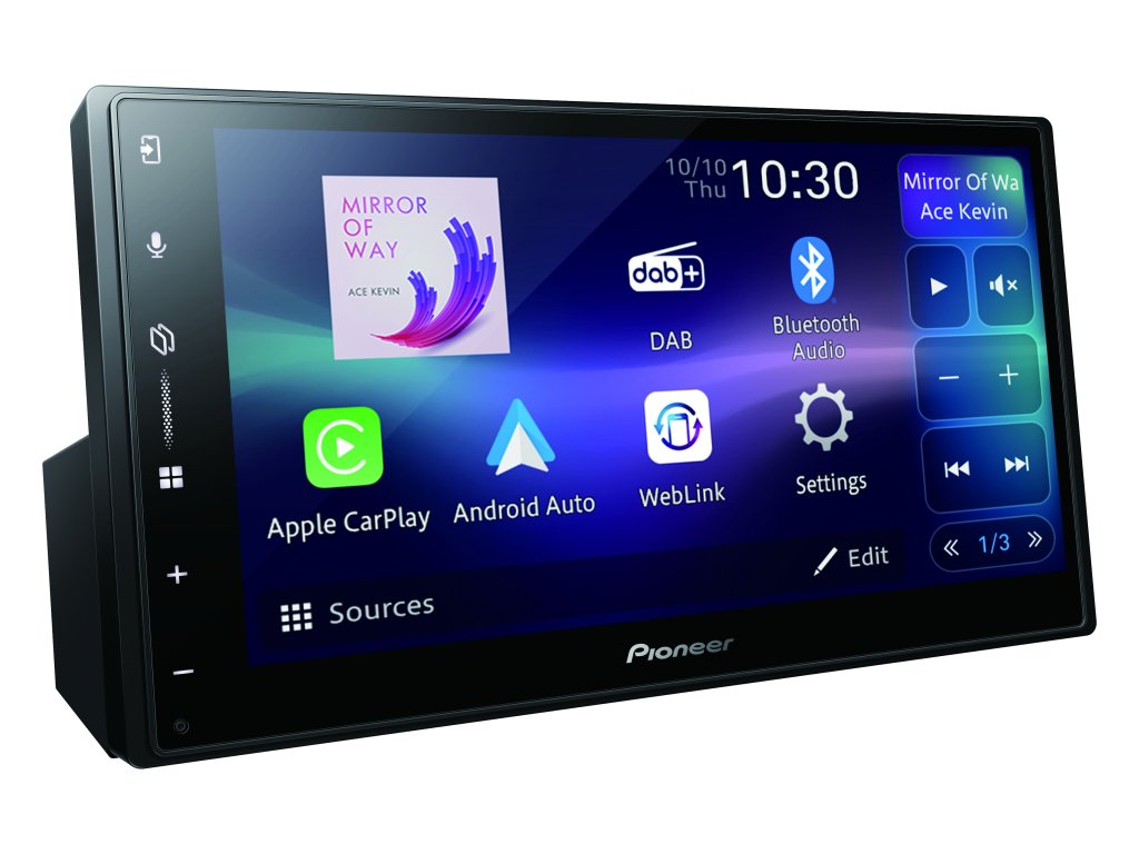 6,8" kapacitní dotekový LCD displej, podpora pro bezdrátový Apple CarPlay a Android Auto prostřednictvím Wi-fi, FM/DAB/DAB+ tuner, Waze a Spotify přes Android Auto nebo Apple CarPlay, SiriEyes, FULL HD Video, Bluetooth, externí mikrofon, 4x50W MOSFET, 13-pásmový ekvalizér, přehrává soubory WMA/MP3/WAV/AAC/FLAC/H.264/Mpeg4/JPEG/TS/WMV/MKV/FLV/TS, zadní USB/AUX vstup, RCA výstup 3x, vstup pro couvací kameru, vstup pro přední kameruPro DAB příjem nutno dokoupit anténu, např. Pioneer CA-AN-DAB.001.