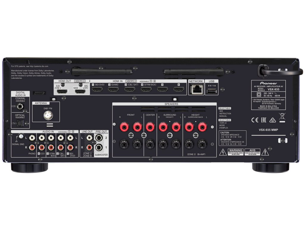 Pioneer VSX-935 AV přijímač 7.2 se sítí, Chromecast, AirPlay 2, Spotify, TIDAL, TuneIn, černý