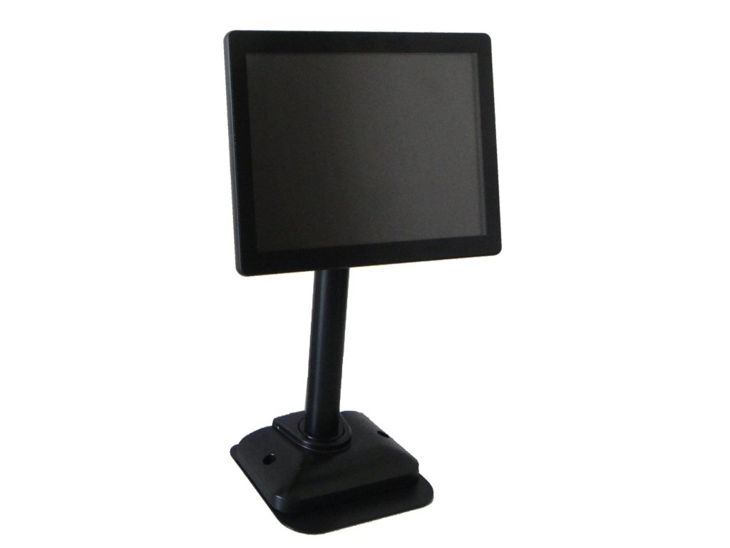 Plastový stojan pro malé monitory s možností přišroubování k desce (včetně 10 cm prodlužovacího dílu).Lze použít např. pro zákaznický displej k pokladně.