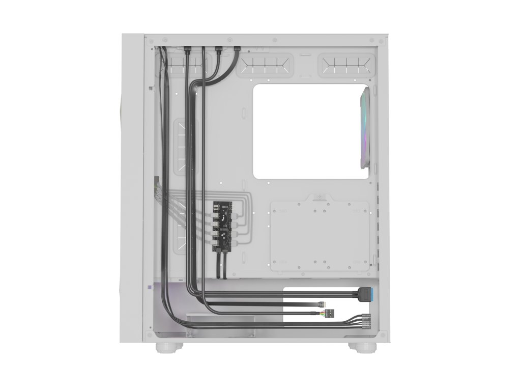 Až 4 ventilátory GENESIS Oxal 120 ARGB, které nabízejí nejen vysoký výkon, ale také možnost ovládání pomocí základní desky. Kromě originálního designu zajistí také ticho a optimální teploty i v těch nejteplejších dnech. Až 3 z nich (čerpající vzduch dovnitř) najdete vpředu, zatímco zbývající jeden (výfukový) vzadu. Díky této konfiguraci se můžete spolehnout na pozitivní tlak uvnitř skříně, který v kombinaci s plnou filtrací ještě lépe chrání před prachem. Nestačí vám to? Další 2 prostory na horní a spodní straně skříně vám umožní snadno rozšířit jednotku podle vašich představ (včetně montáže až 3 140mm ventilátorů na přední straně).