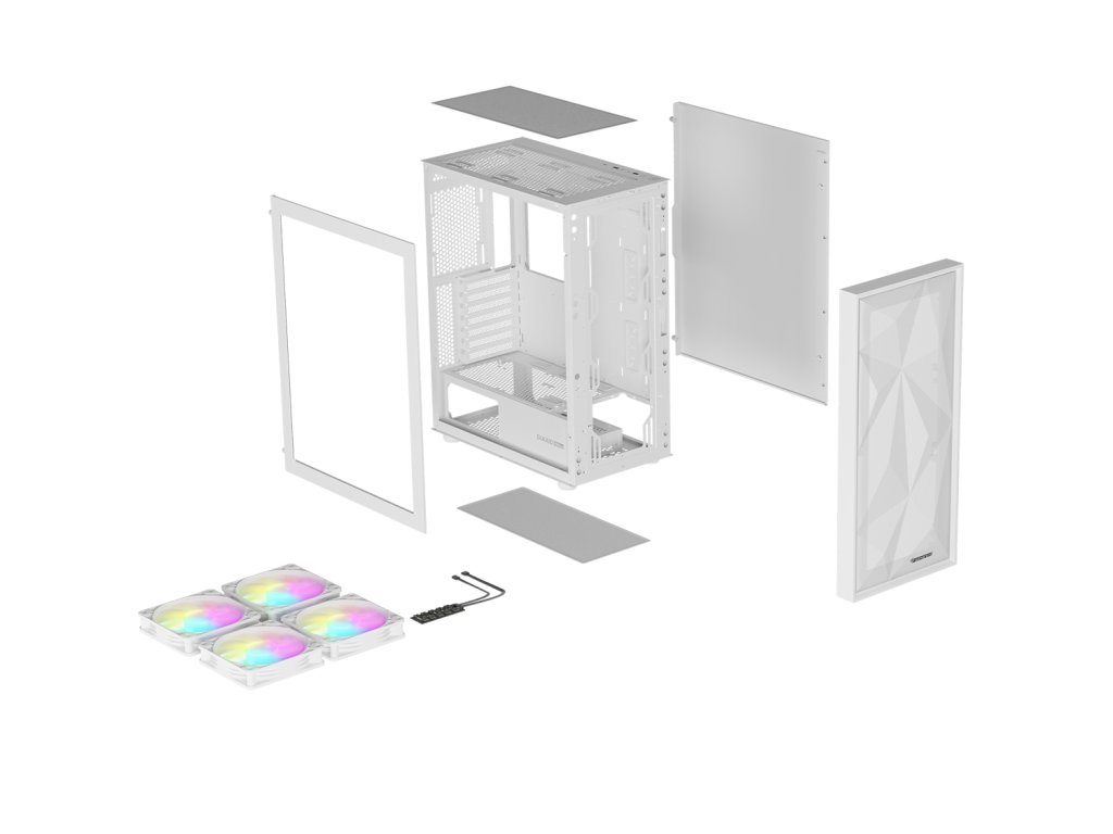 Počítačová skříň Genesis DIAXID 605 ARGB/Midi Tower/Transpar./Bílá