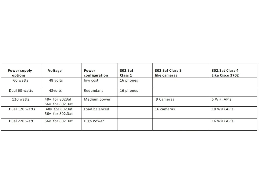 Maximální povolené příkonové hodnoty napájecího zdroje na vstupu do POE panelu: 48/56V 220W