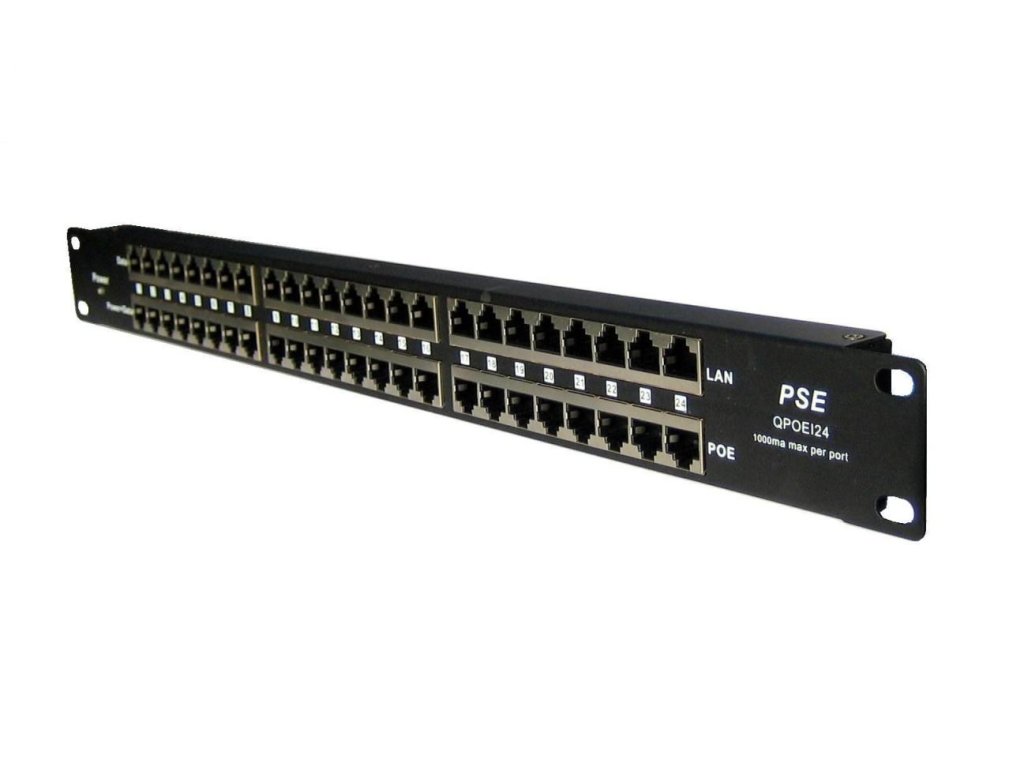 Panel integrující 24 pasivních POE injektorů, vhodný pro napájení až dvaačtyřiceti zařízení, v provedení do 19" racku.Profesionální řešení pro vzdálené napájení většího počtu aktivních prvků s integrovaným extraktorem po UTP kabeláži.