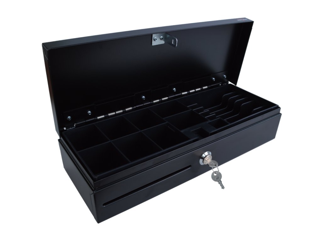Pokladní zásuvka flip-top FT-460C1 - s kabelem, bez zamykatelného krytu, 9-24V, černá