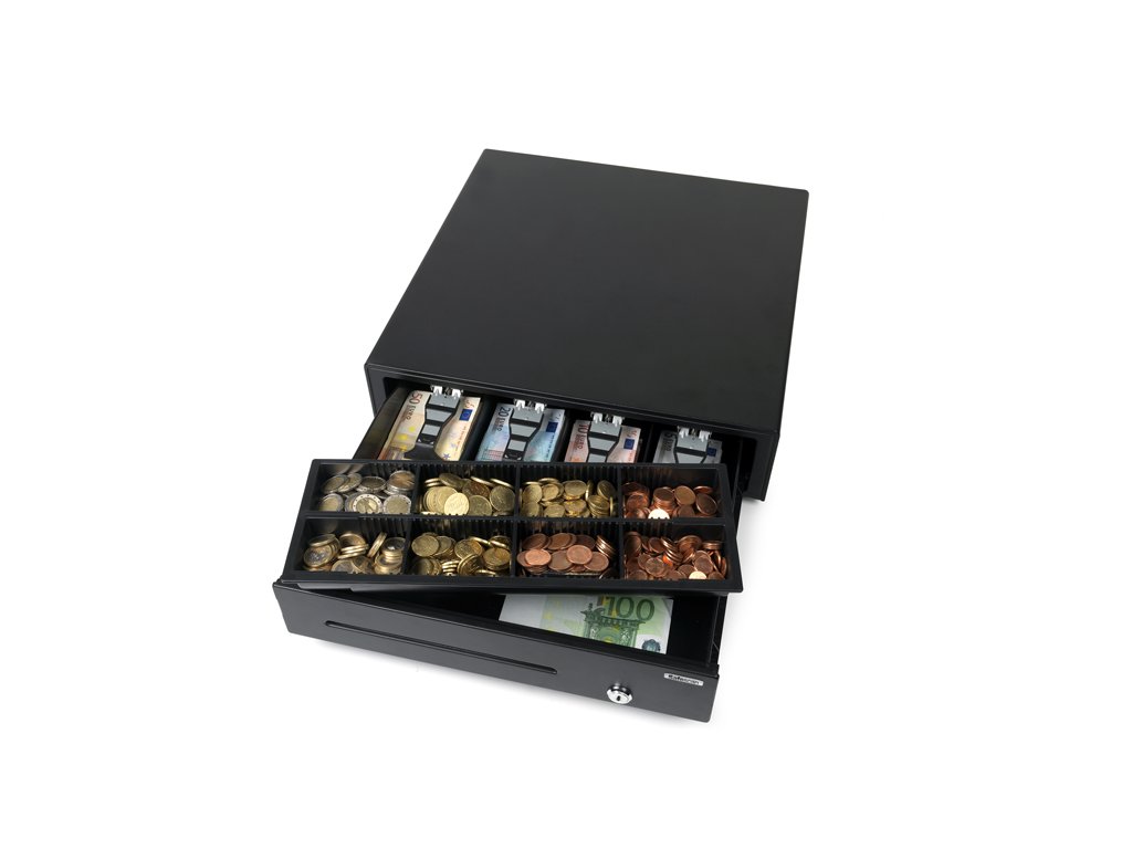 Pokladní zásuvka pro nenáročné použitíObsahuje oddělený prostor pro ukládání velkých částek a cenných papírů, aby nebyly na očích