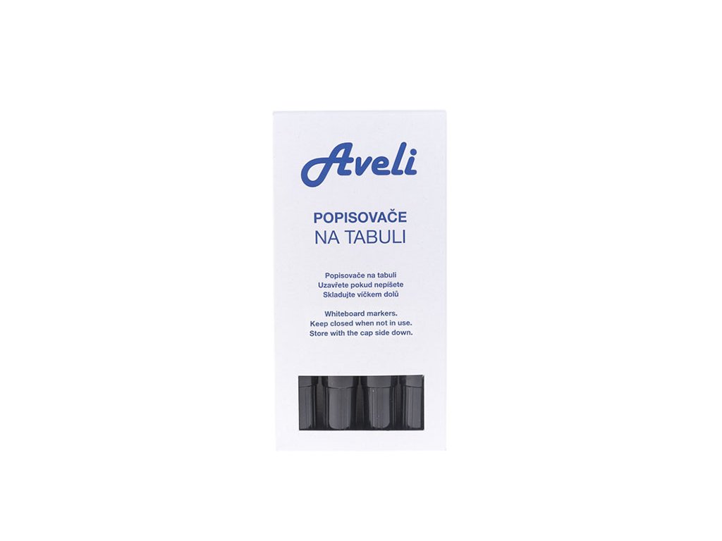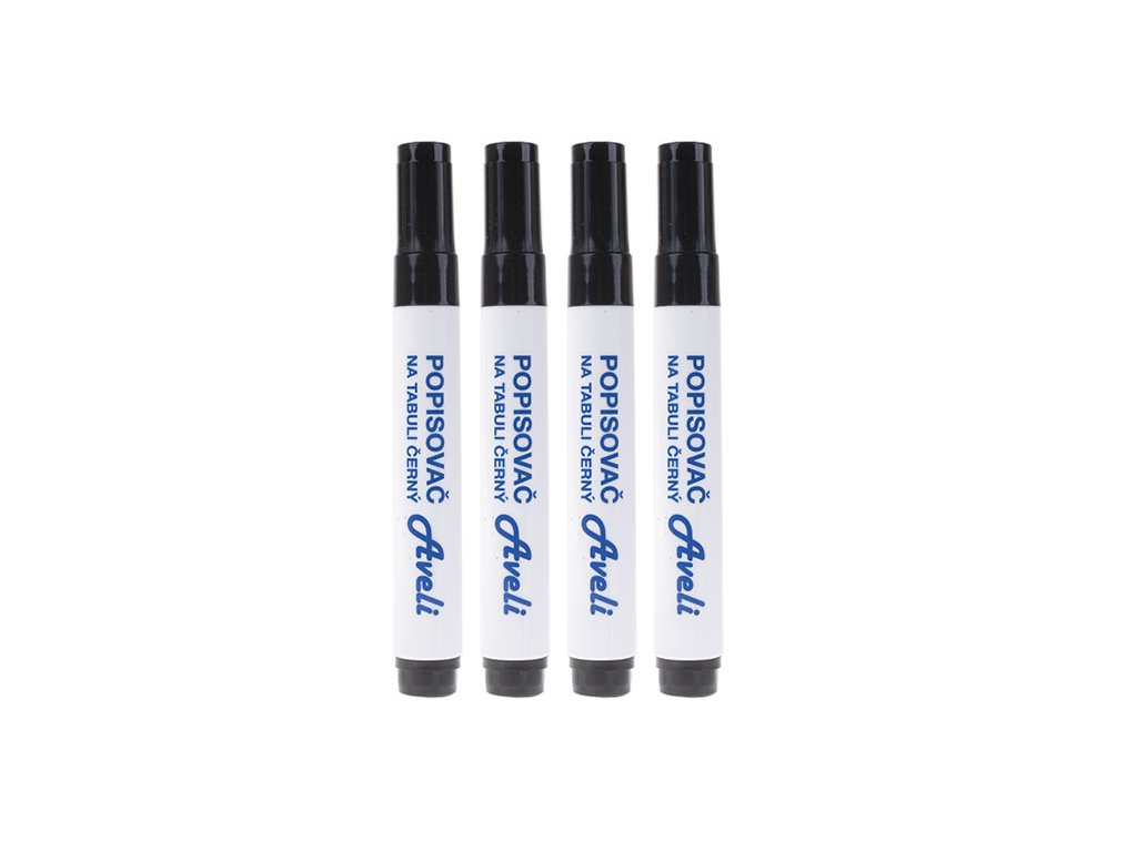 Popisovač pro tabule a flipcharty AVELI. Sada 4 černých popisovačů.- Netoxický