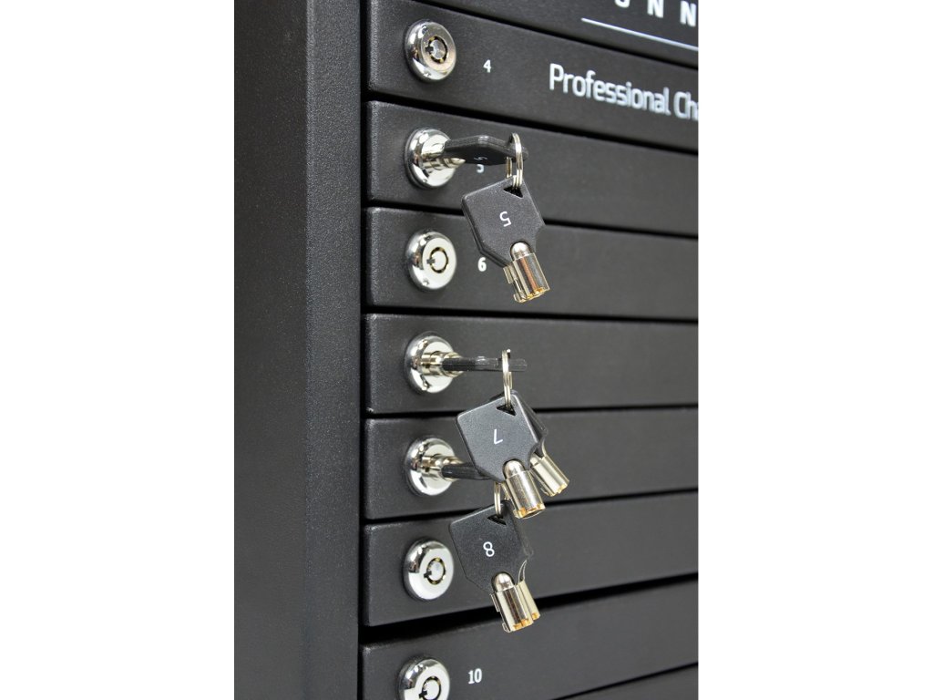 Nejefektivnější řešení pro bezpečné nabíjení až 10 zařízeníOriginální napájecí skřínka s funkcí dobíjení a individuálních zámků pro každé zařízení zvlášt.