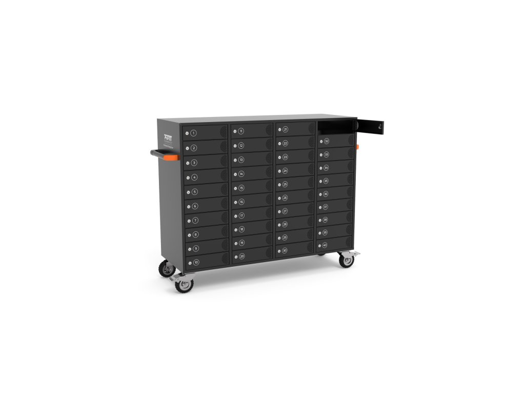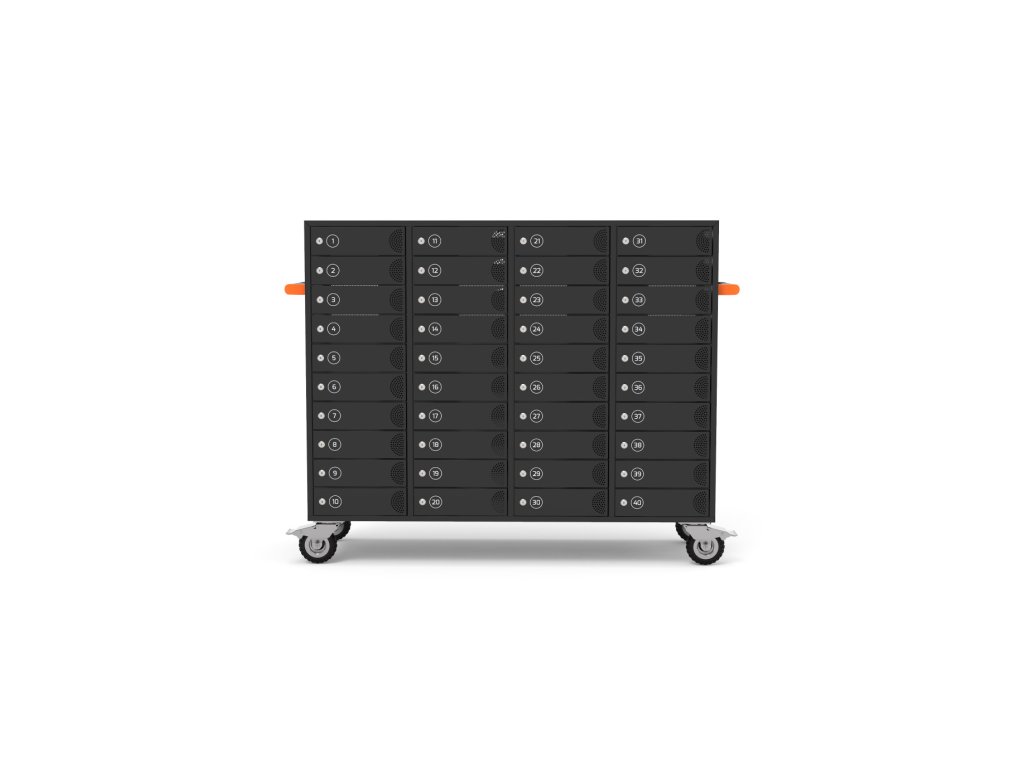 Nabíjecí skříň se 40 jednotkami a samostatnými dvířky umožňuje nabíjet, bezpečně ukládat a spravovat napájecí kabely až pro 40 tabletů, notebooků, mobilních telefonů a dalších elektronických zařízení. Doporučuje se pro vzdělávací, kancelářské, obchodní, maloobchodní, průmyslové a zdravotnické prostředí. Kovová skříň podporuje ochranu zařízení díky ocelové konstrukci, která zajišťuje dlouhou životnost. Univerzální a flexibilní design nabíjecí skříně zaručuje, že bude vhodná i pro všechna budoucí zařízení.Každé jednotlivé oddělení má zásuvku na střídavý proud. Přepěťová ochrana zajistí bezpečnost vašich zařízení.