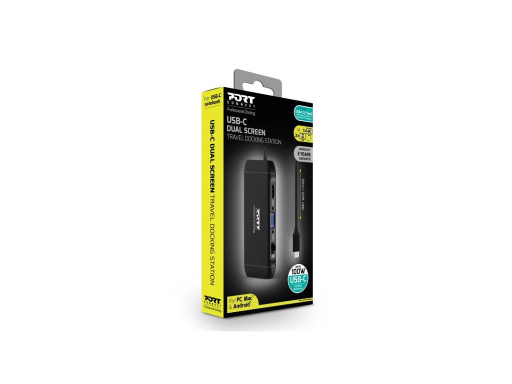 PORT CONNECT Dokovací stanice 8v1 DUAL SCREEN,2xFullHD nebo 1x4K, HDMI, VGA, 3xUSB-A, RJ-45, TF, SD