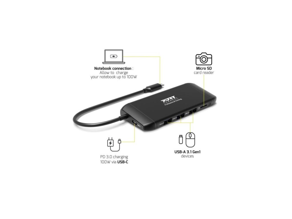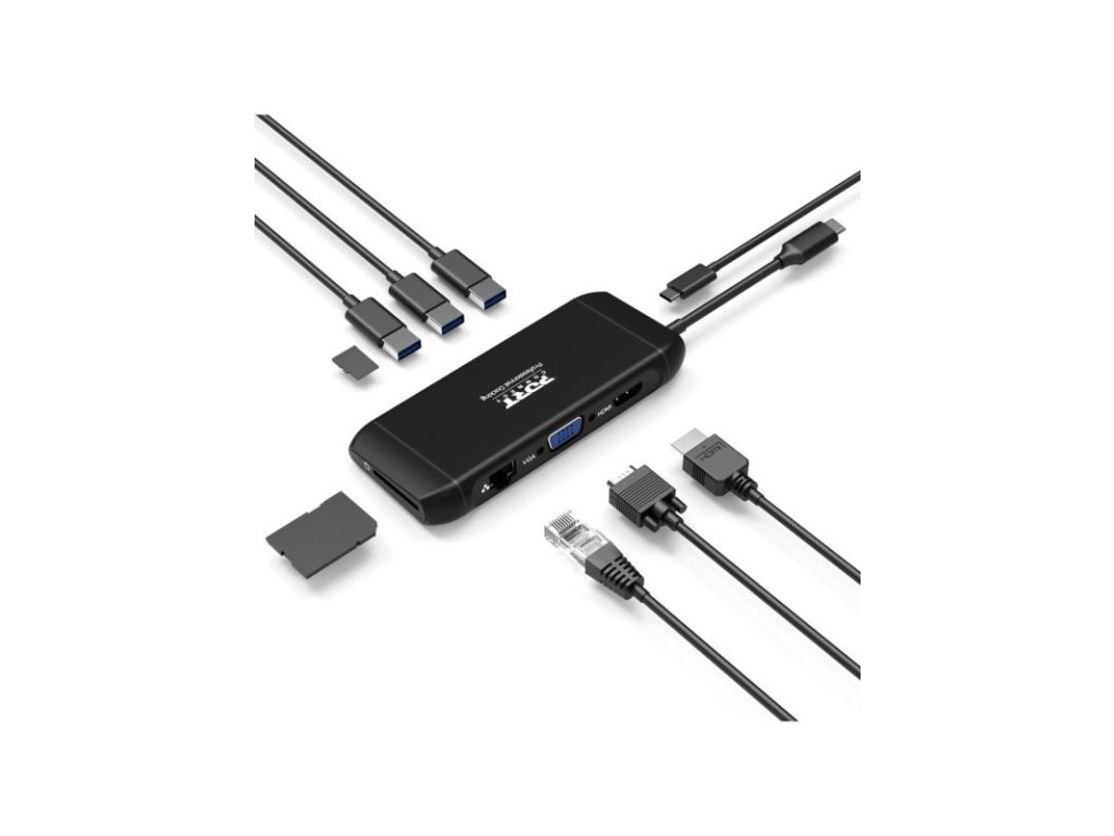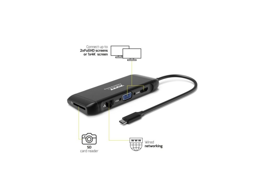 Připojte 8 periferií na jediném portu z vašeho počítače: 1x HDMI, 1xVGA, 3x USB-A 3.0, 1x RJ-45, 1x TF, 1x SD