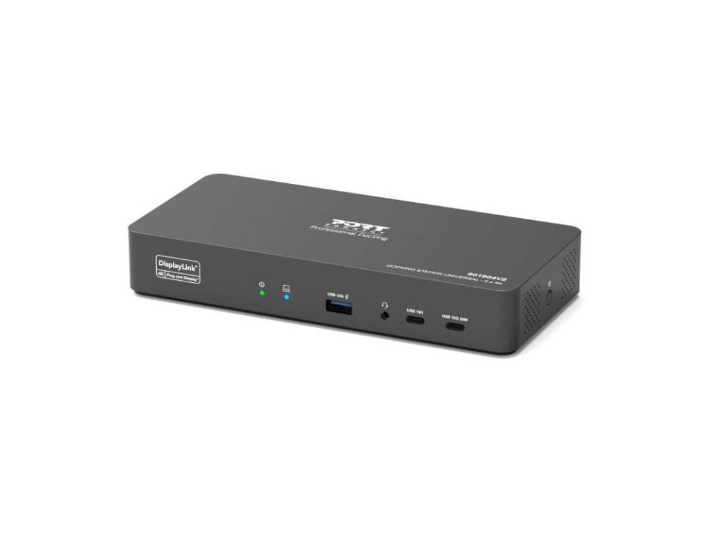 PORT CONNECT Univerzální dokovací stanice USB-C, 2× 4K, HDMI / DisplayPortUniverzální USB-C dokovací stanice PORT je navržena pro výrazné rozšíření konektivity moderních notebooků a mobilních pracovních stanic. Umožňuje připojení až dvou externích monitorů v rozlišení 4K při 60 Hz a současně poskytuje napájení, síťové připojení i kompletní portovou výbavu prostřednictvím jediného USB-C kabelu.