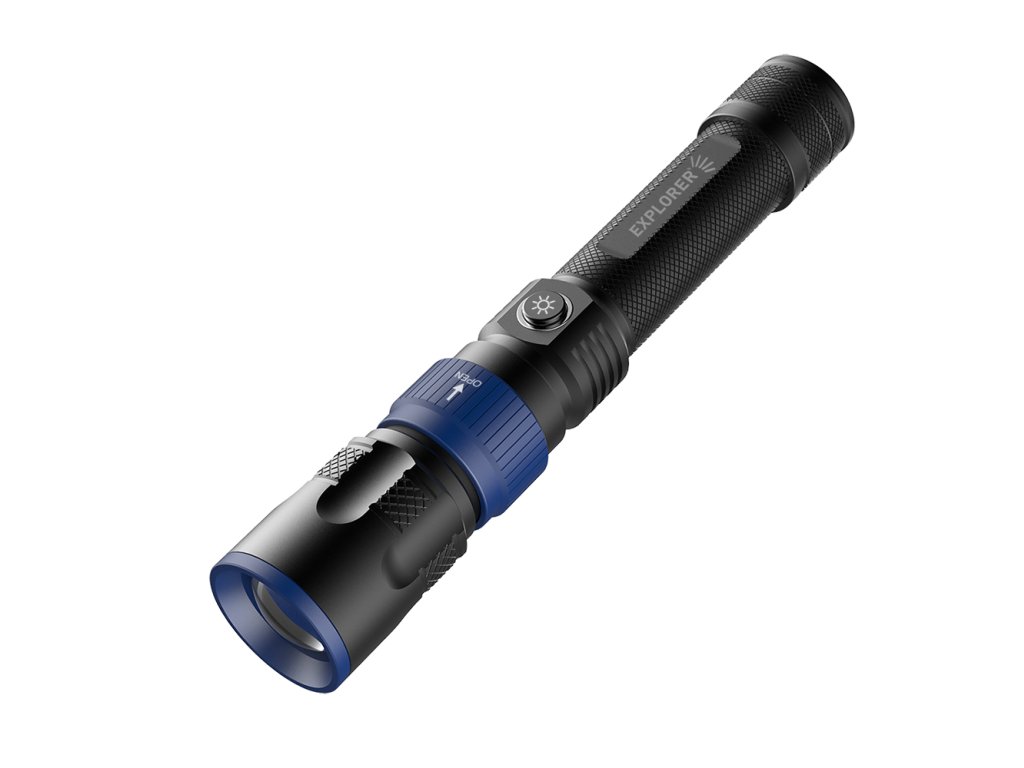 • Snadné ovládání a výměna hlavic: Stačí stlačit vypínač ON/OFF a jednoduchými stisknutími přepínat mezi světelnými režimy. Pro výměnu hlavic jen potáhněte pojistku dolů a vyberte požadovanou hlavici.