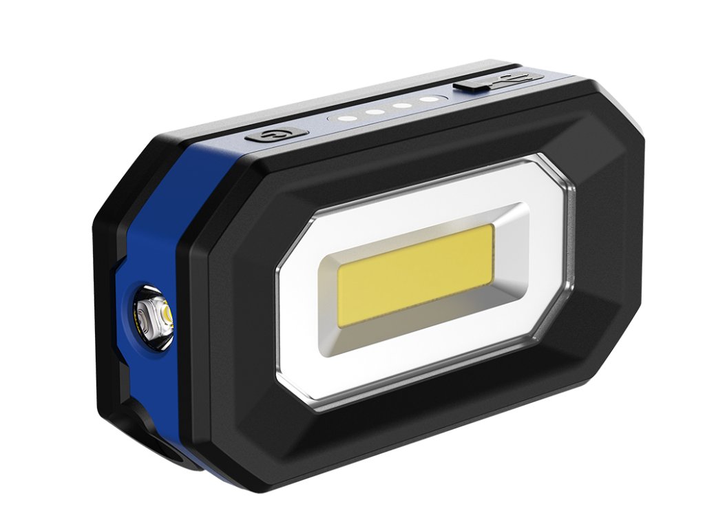 • Dvě světla pro lepší pokrytí: Hlavní světlo (COB): Svítivost až 500 lm pro intenzivní osvětlení pracovního prostoru. Boční kulaté světlo (SMD): 150 lm pro menší, přenosné osvětlení v těsných prostorech.