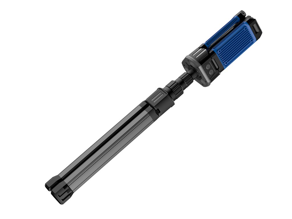 Snadno ho složíte i rozložíte, a pomocí vestavěného stativu ho lze nastavit až do výšky 1,7 metru. V nouzové situaci může fungovat jako powerbanka s výstupem USB-A.