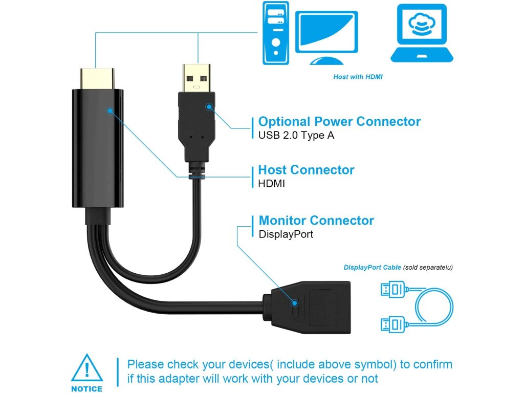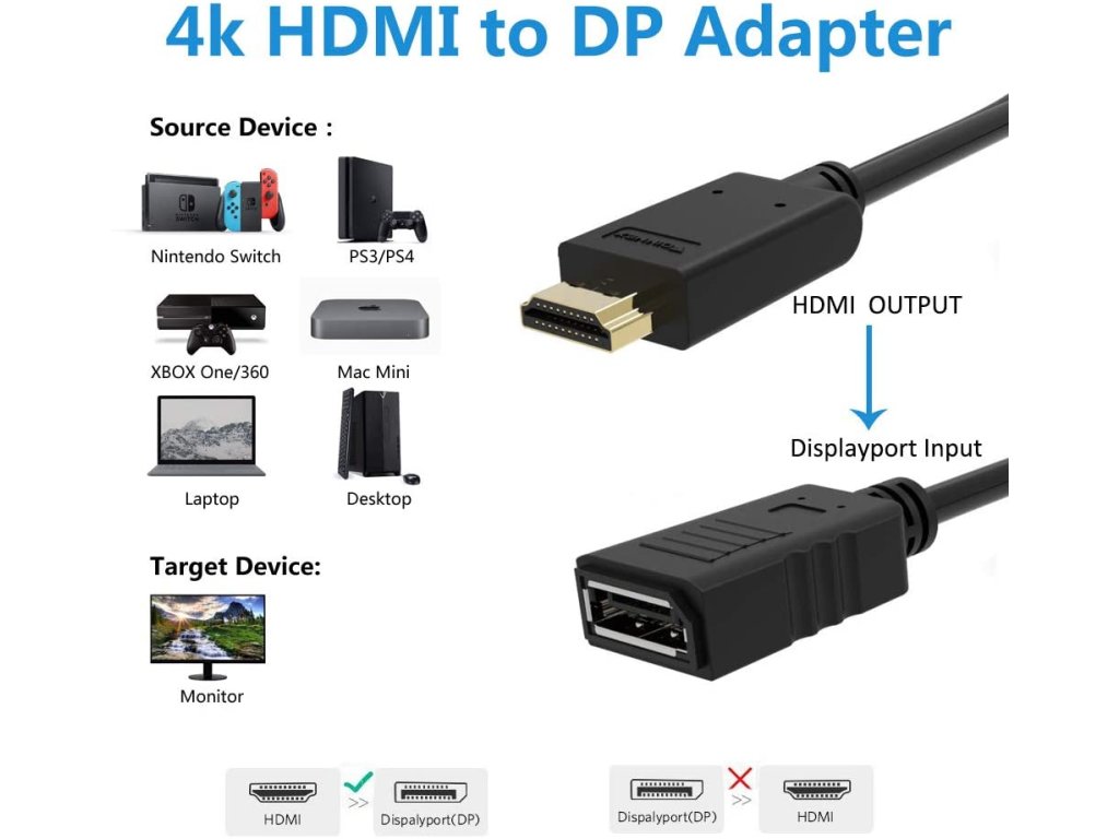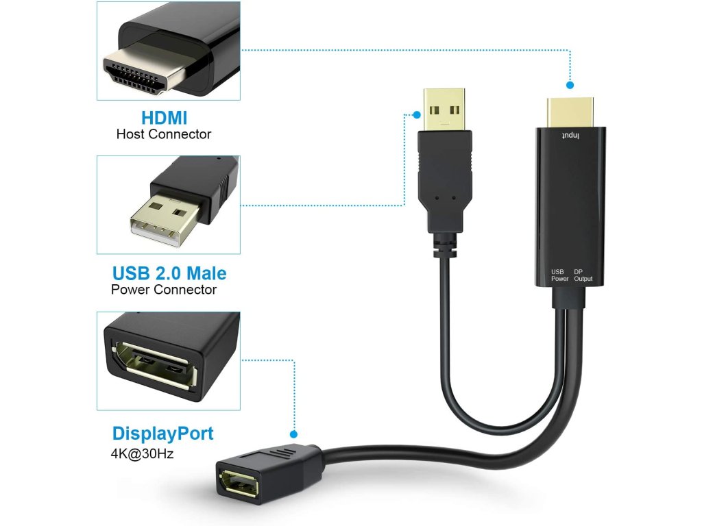 * Převádí signál HDMI na DisplayPort signál