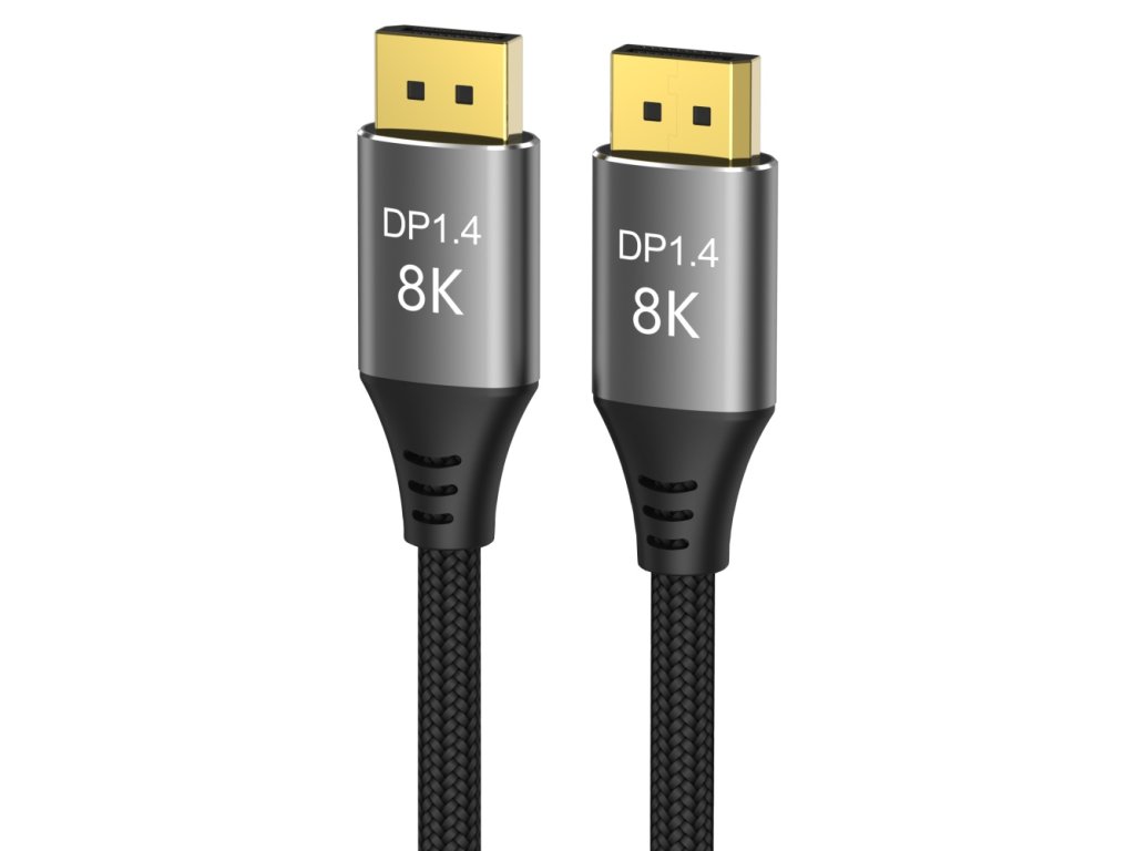 PremiumCord DisplayPort 1.4 přípojný kabel 32,4 Gbit/s, rozlišení 8K, kovové a zlacené konektory, 1 mKabel je vybaven standardem DisplayPort 1.4 a poskytuje obzvláště vysokou šířku pásma, ideální pro plynulé přehrávání obrazu bez trhání obrazovky nebo trhání při hraní her a rozlišení ostré jako břitva s rozlišením až 8K nebo 4k.