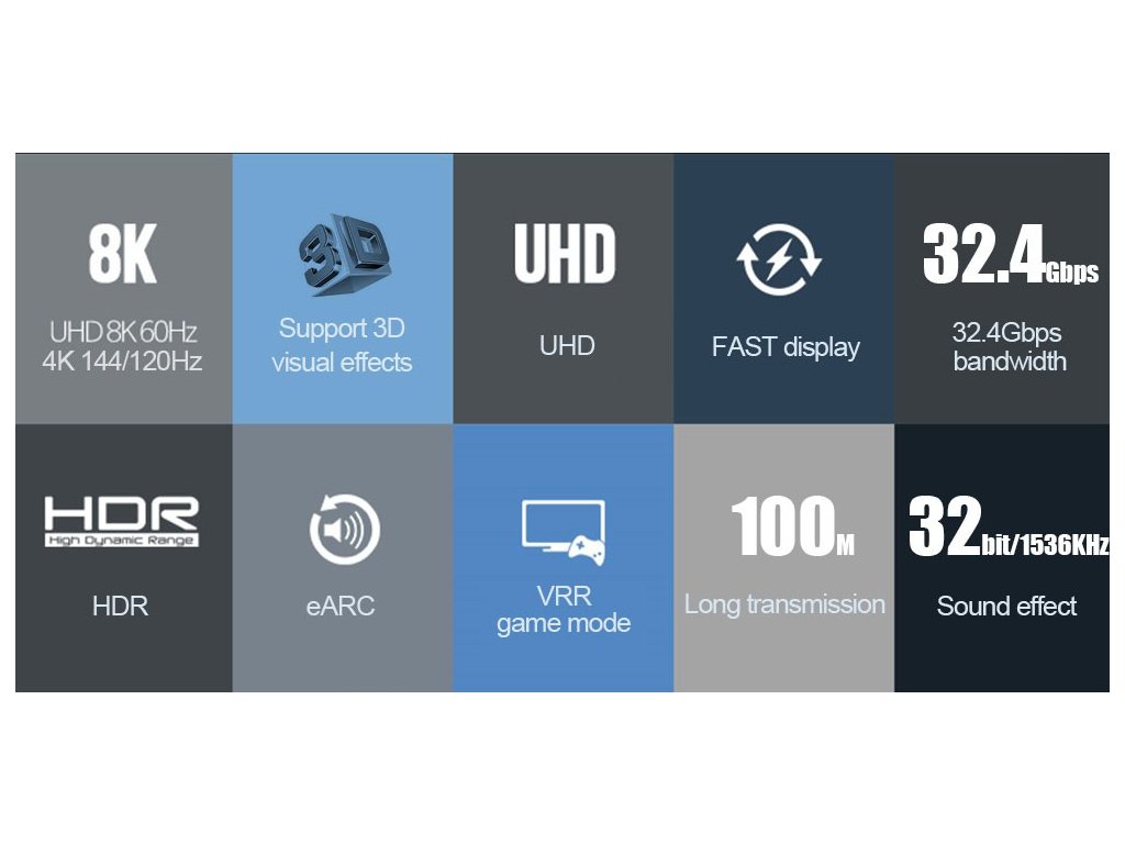 - 8K (7680x4320) při 60Hz a 24 bitová barevná hloubka