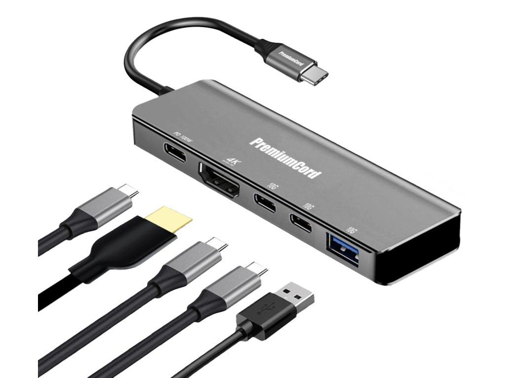 PremiumCord USB-C na 4K@60Hz HDMI + 10G USB3.2 A + 10G 2x USB-C + PD(power delivery) adaptérTento adaptér umožňuje vysoce kvalitní převod videa a zvuku z USB-C konektoru na 4K@60Hz HDMI konektor pro další monitor/TV/projektor. Funguje jako externí grafická karta.