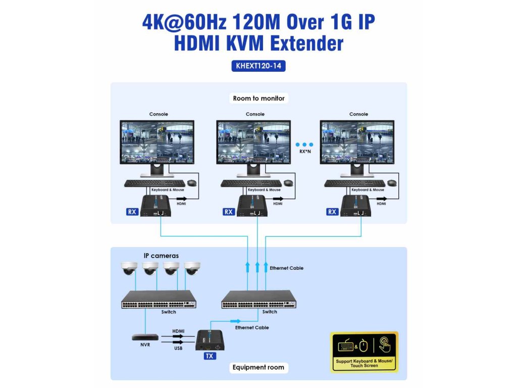 PremiumCord 4K@60Hz HDMI KVM extender s USB 2.0 na 120m přes LAN síť, over IPZařízení umožňuje po jednom síťovém kabelu nebo přes ethernet síť přenést HDMI 4K@60Hz nebo FULL HD 1080p signál a připojit USB periferie, klávesnici,myš nebo dotykovou obrazovku až na vzdálenost 120m nebo 200m při přímém propojení.