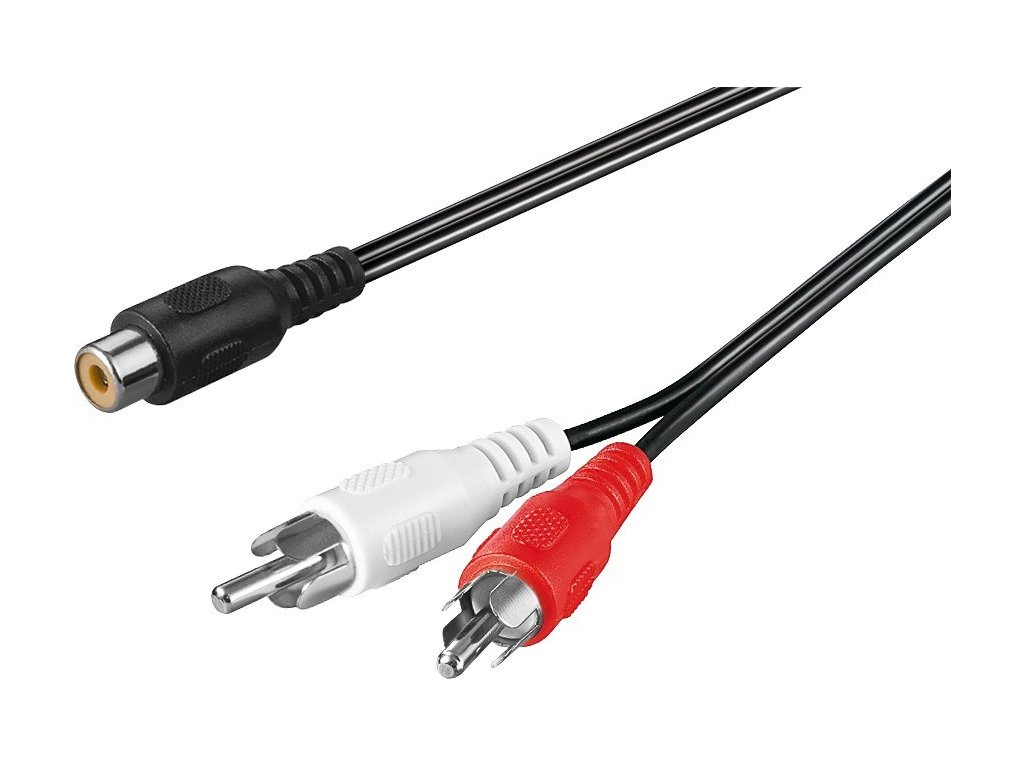 Kabel pro spojení dvou audio zařízení zvukovým signálem. Kabel 1x CINCH female - 2x CINCH male 20cmKonektory: