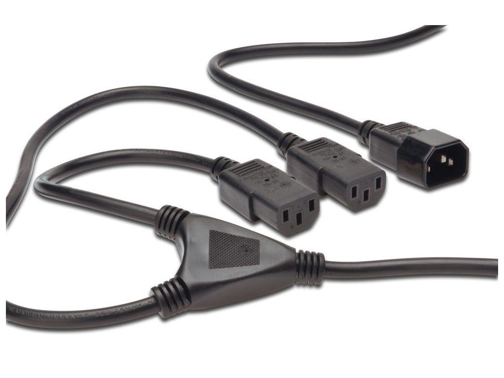 PremiumCord Kabel síťový 230V, Y-kabel prodlužovací M-2x FProdlužovací napájecí kabel k monitoru nebo počítači nebo k připojení napájení monitoru do počítače - zároveň slouží jako rozdvojka 230V kabelu.