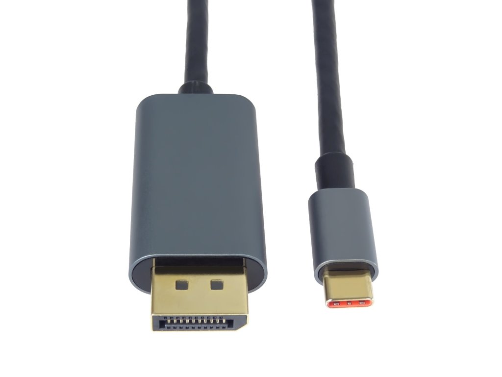 PremiumCord kabel USB-C na DisplayPort DP1.4 8K@60Hz a 4k@120Hz 2mKabel s nejnovější specifikací DP1.4 přichází, podporuje rozlišení až 8K@60 Hz s HDCP 2.2, umožňuje připojit a zobrazovat na nejnovějších monitorech nebo televizorech v rozlišení ultra HD 8K@60Hz