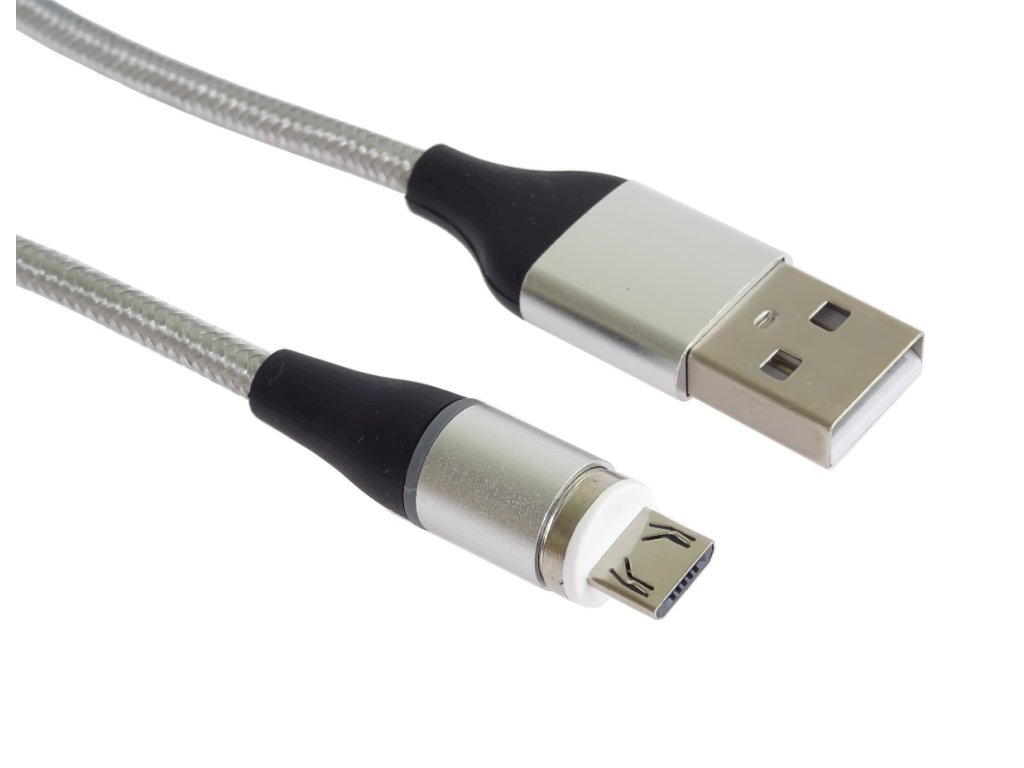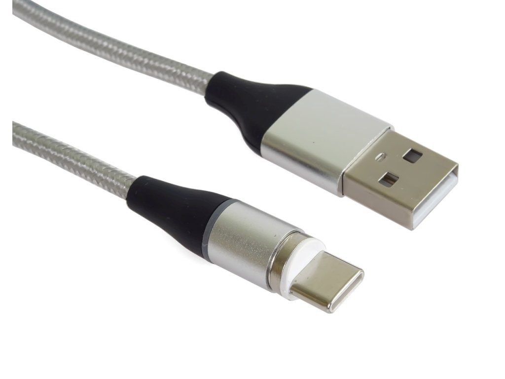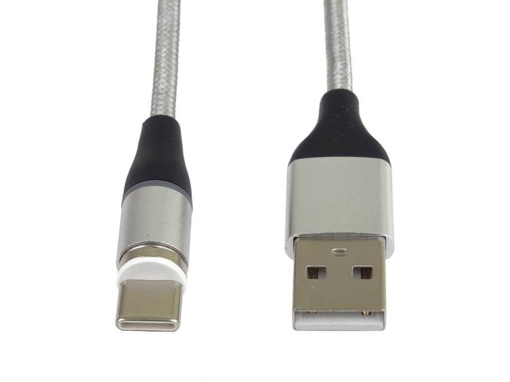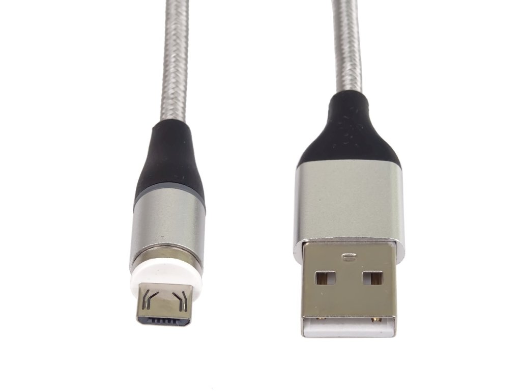PremiumCord Magnetický micro USB a USB-C nabíjecí a datový kabel 1m, pro proud až 3A, stříbrný*Kabel obsahuje dvě výměnné magnetické koncovky Micro USB a USB-C