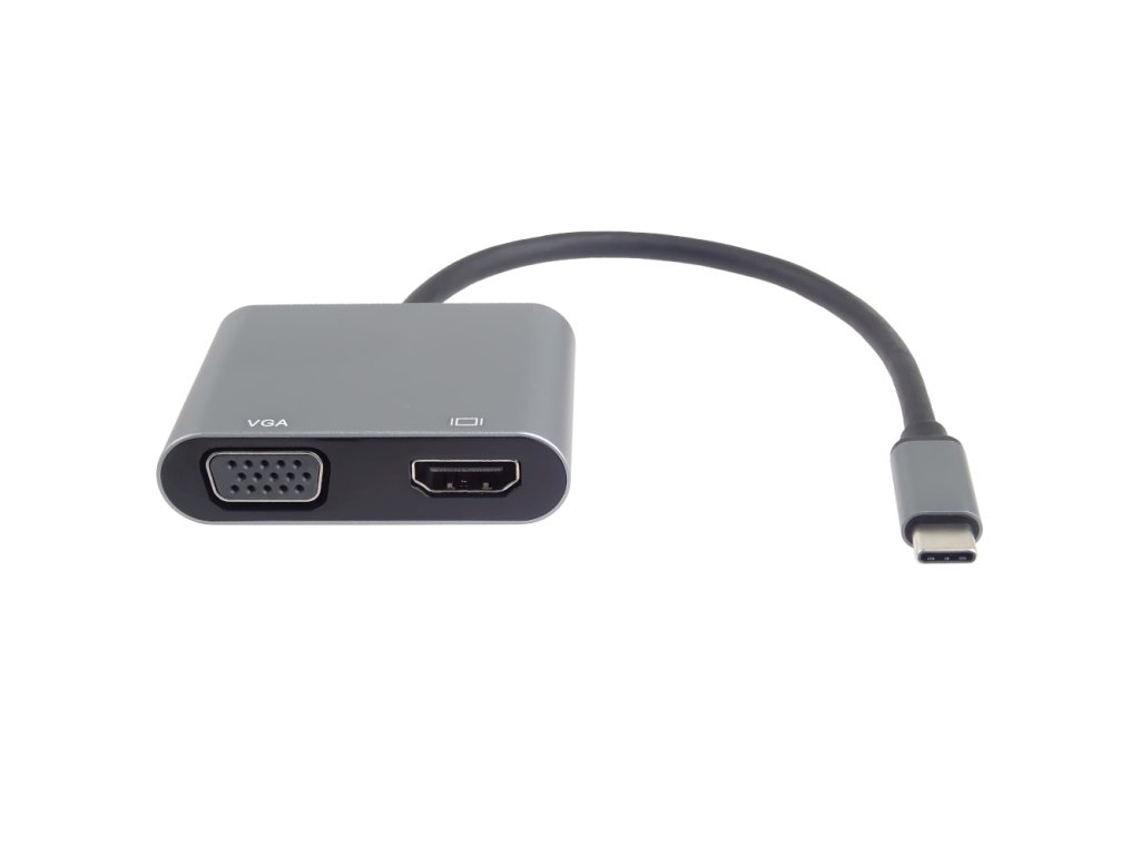 PremiumCord MST adaptér USB-C na HDMI + VGA, rozlišení 4K a FULL HD 1080pTento adaptér umožňuje vysoce kvalitní převod videa a zvuku z USB-C konektoru na HDMI a VGA konektor pro dva monitory/TV/projektory. Funguje jako externí grafická karta s dvěma výstupy.