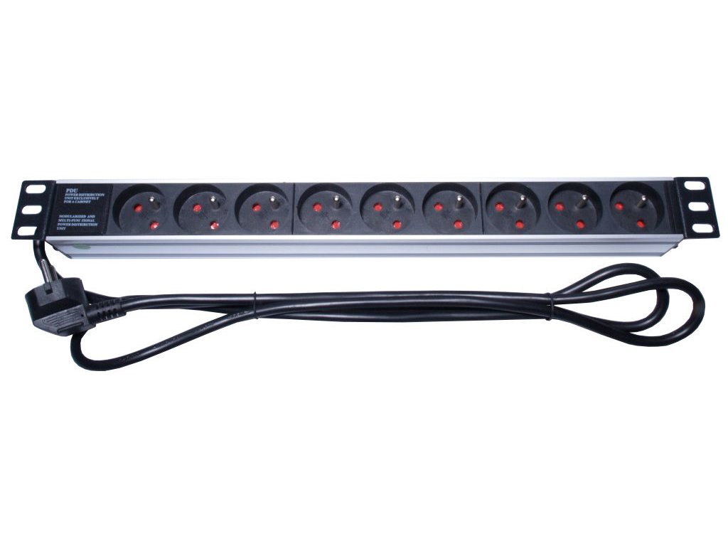 PremiumCord Panel napájecí 1U do 19" racku,9x230V, 2m kabel