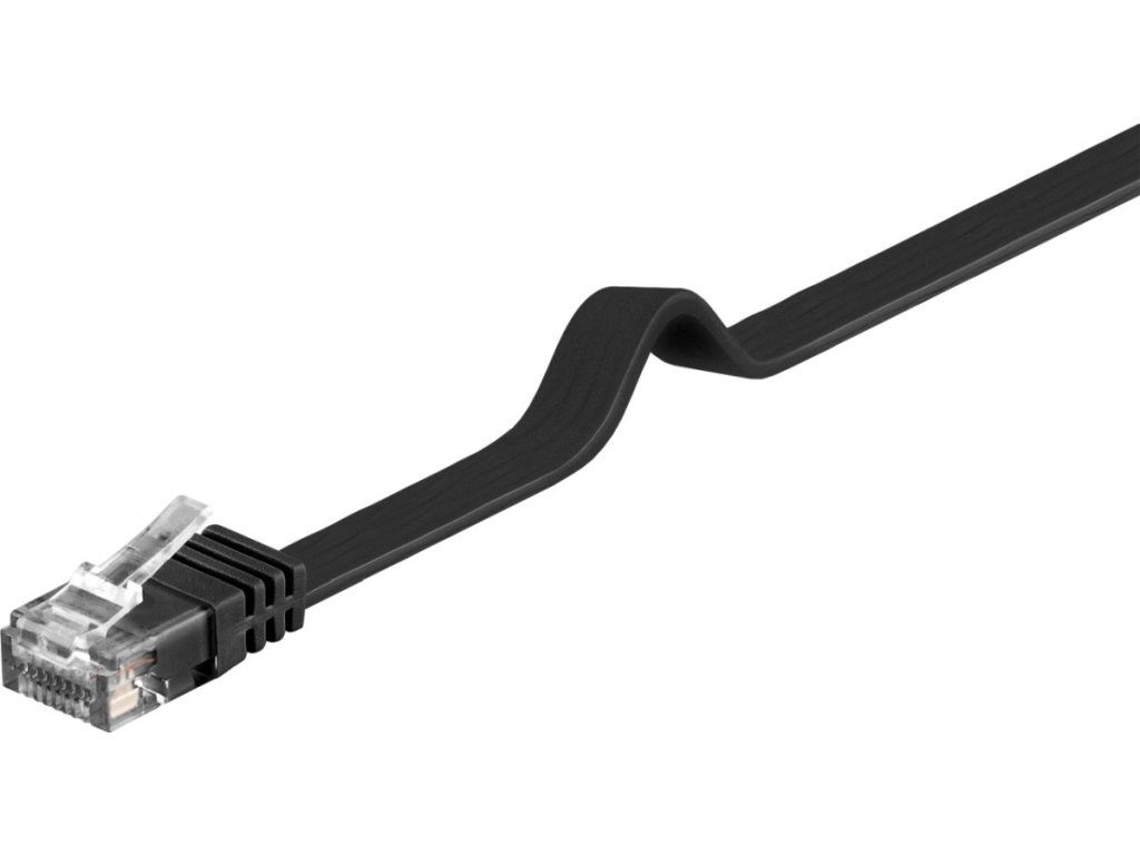 PremiumCord Plochý patch kabel UTP RJ45-RJ45 CAT6 5m černá*Nestíněný LAN / síťový kabel pro připojení síťových zařízení s konektory RJ45