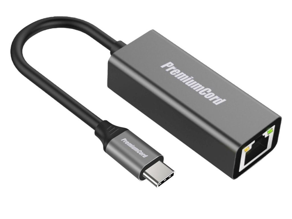 PremiumCord Adapter USB-C to Gigabit 10/100/1000Mbps konektor RJ45Převodník, který umožní připojit Váš počítač s portem USB typu C do internetu nebo k lokální síti pomocí kabelu RJ45.