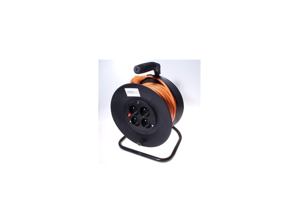 Prodlužovací kabel 230V na bubnu. Snadná manipulace, skladný.- oranžový kabel, černý buben