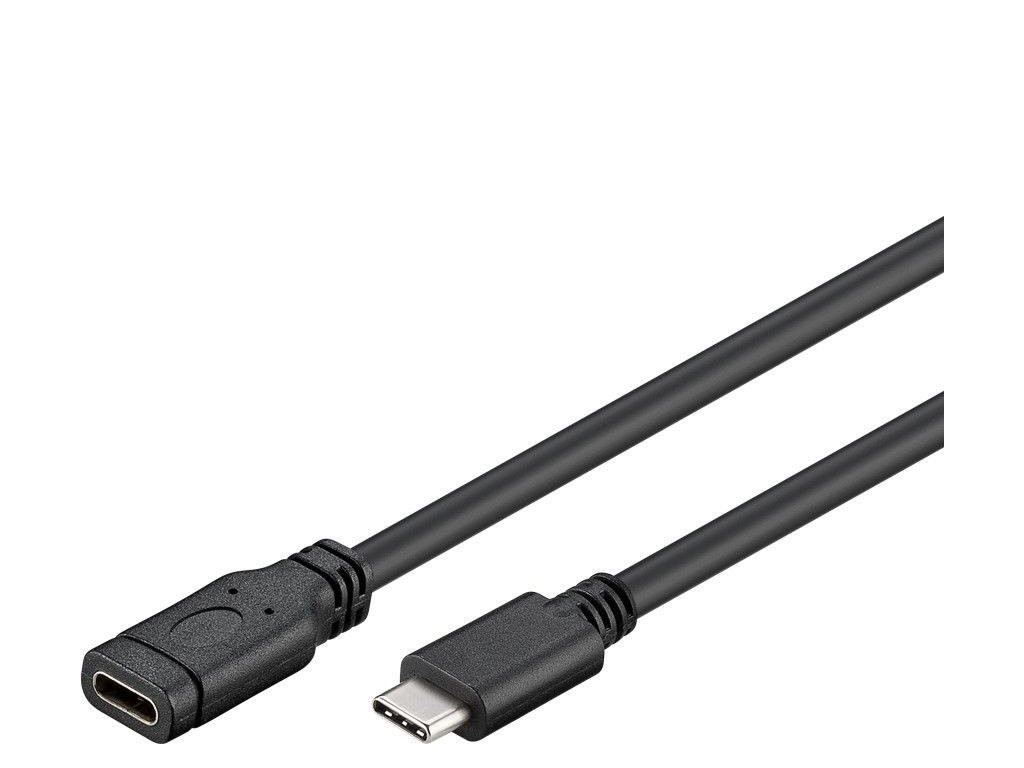 PremiumCord Prodlužovací kabel USB 3.1 konektor C/male - C/female, černý, 2m- Slouží k prodloužení kabelů USB 3.1 s konektory typu C
