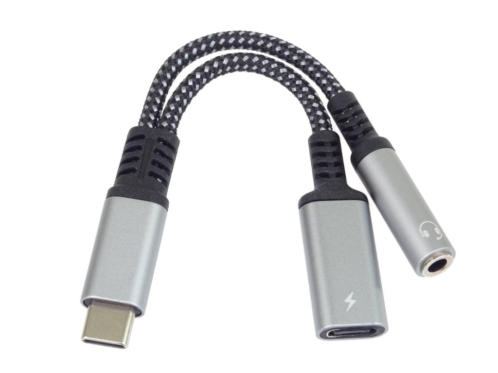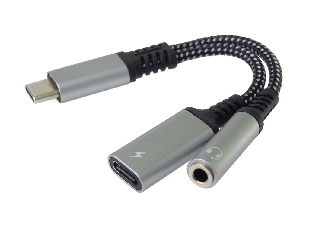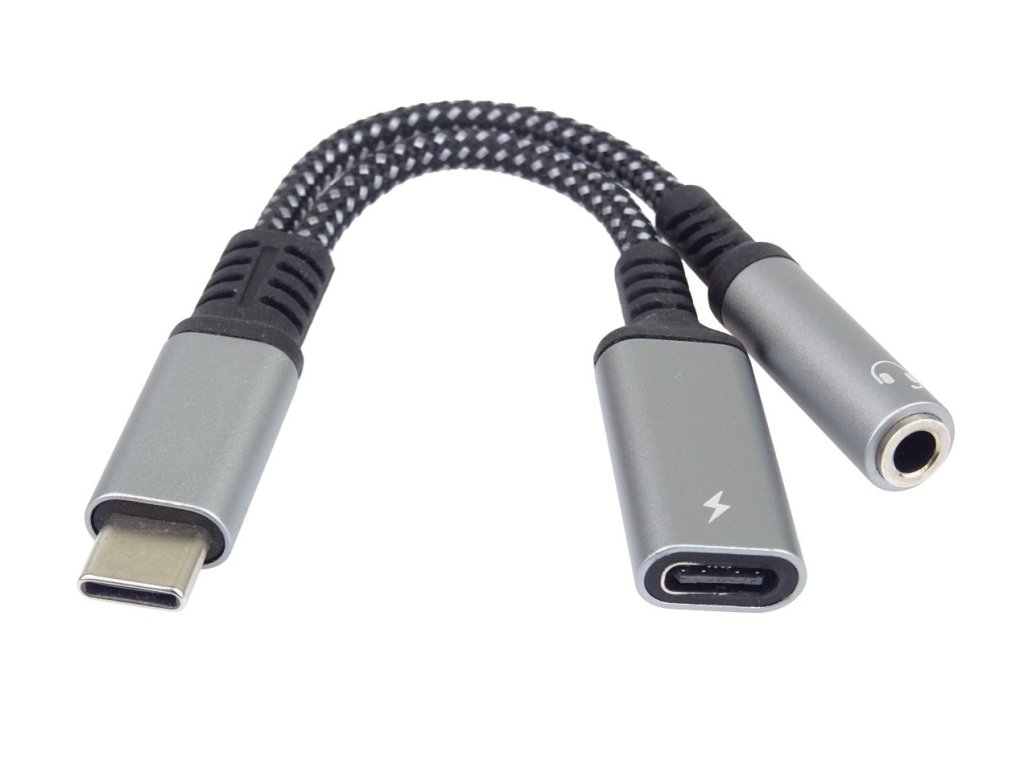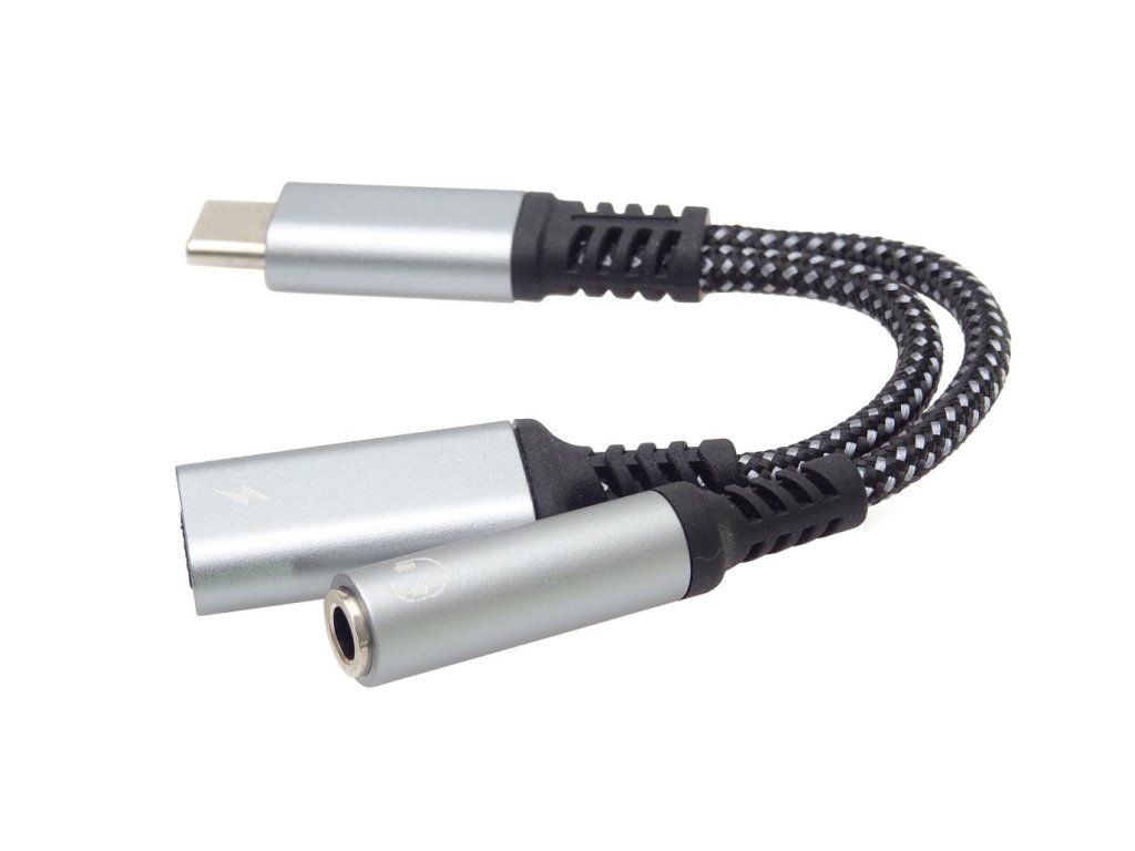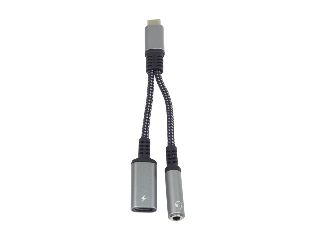 PremiumCord Převodník USB-C na audio jack 3,5mm s DAC chipem + USB typ C konektor pro nabíjeníTento adaptér umožňuje převod a výstup audio signálu na sluchátka na konektor jack 3,5mm a současně nabíjení zařízení s USB typ C konektoru