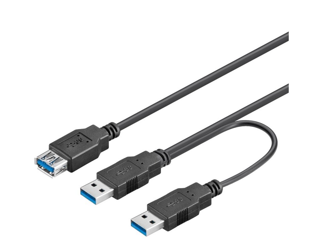 PremiumCord USB 3.0 napájecí Y kabel A/M + A/M -- A/F- USB 3.0 kabel SuperSpeed